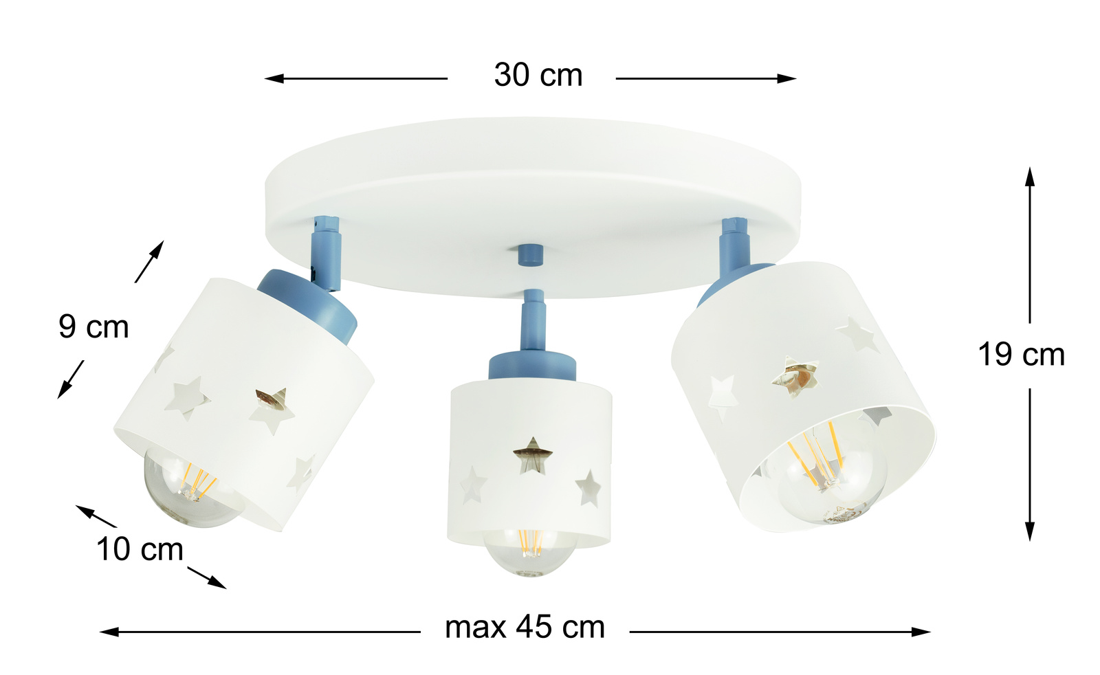 ✔️ Trzy regulowane punkty świetlne pozwalają łatwo skierować światło tam, gdzie najbardziej jest potrzebne – nad biurkiem, łóżkiem czy w kąciku zabaw.