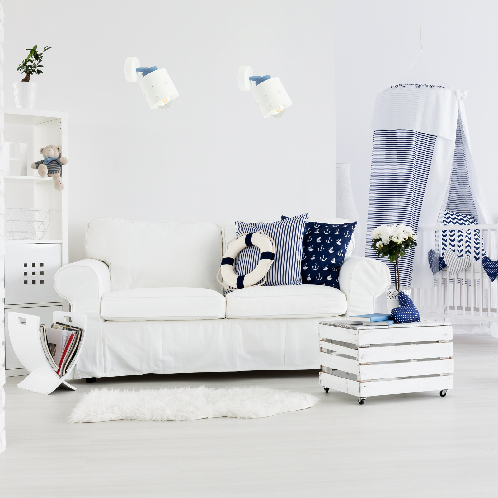 ✔️ Uniwersalna biel i niebieskie detale dodają lekkości i pasują do wielu dziecięcych aranżacji.