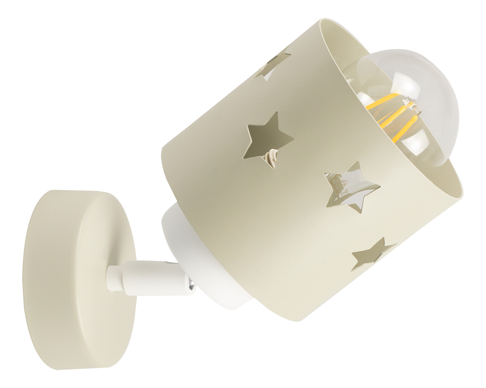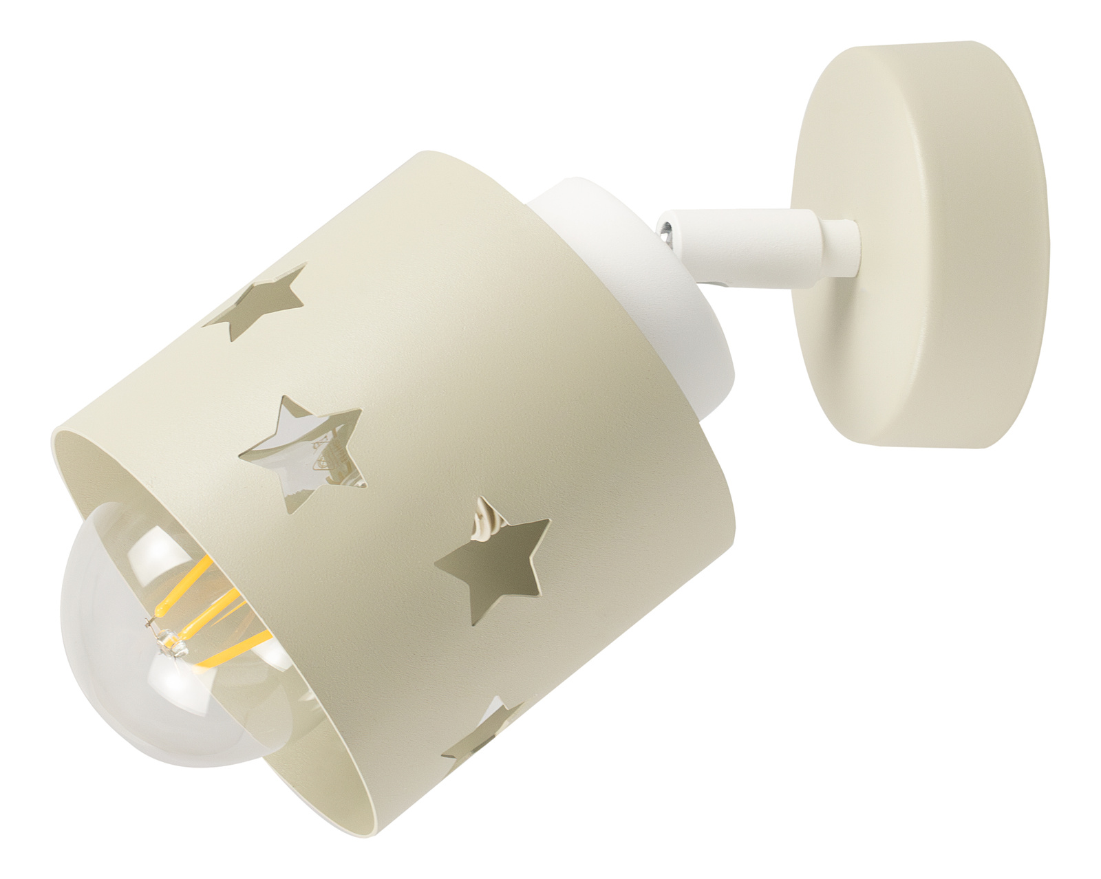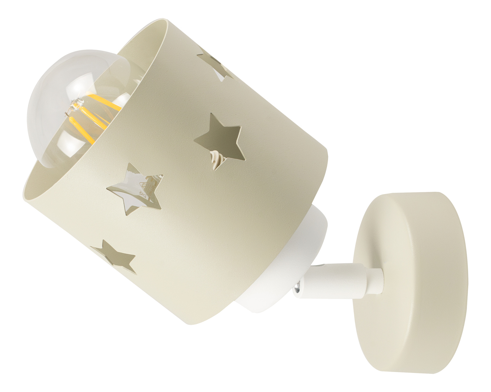 Prawdziwą ozdobą kinkietu jest klosz z wyciętymi GWIAZDKAMI – po zapaleniu światła rzuca on na ścianę subtelne cienie, tworząc magiczny efekt, który zachwyca najmłodszych i wywołuje uśmiech również na twarzach dorosłych .