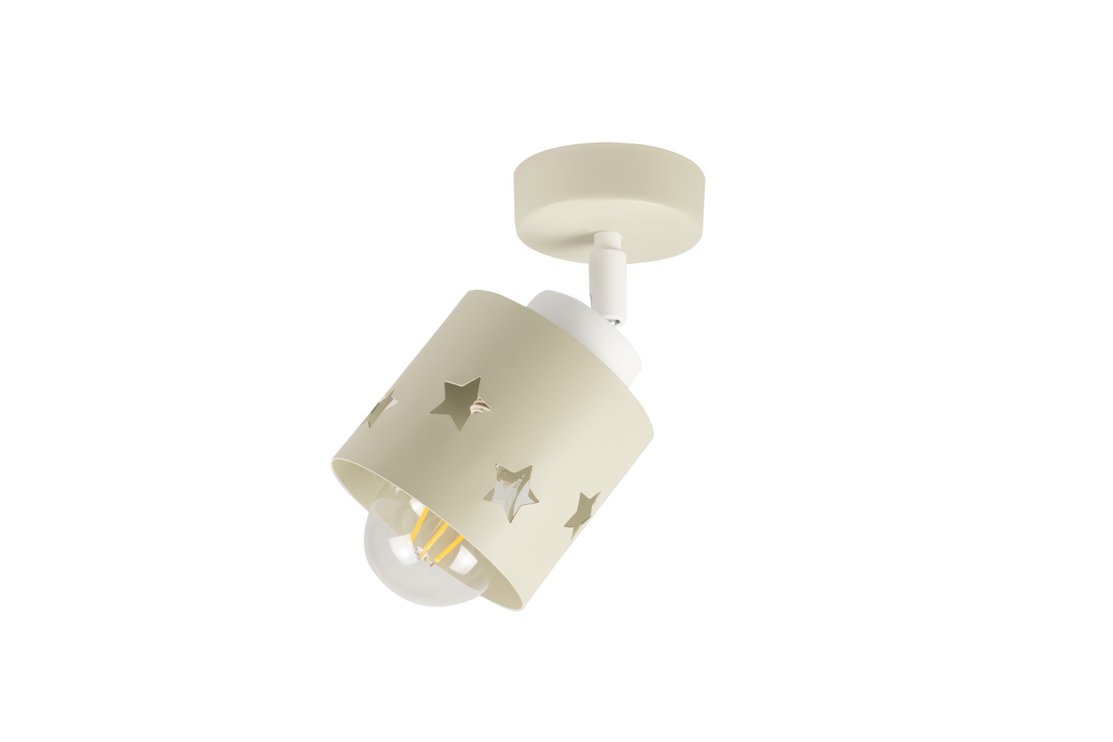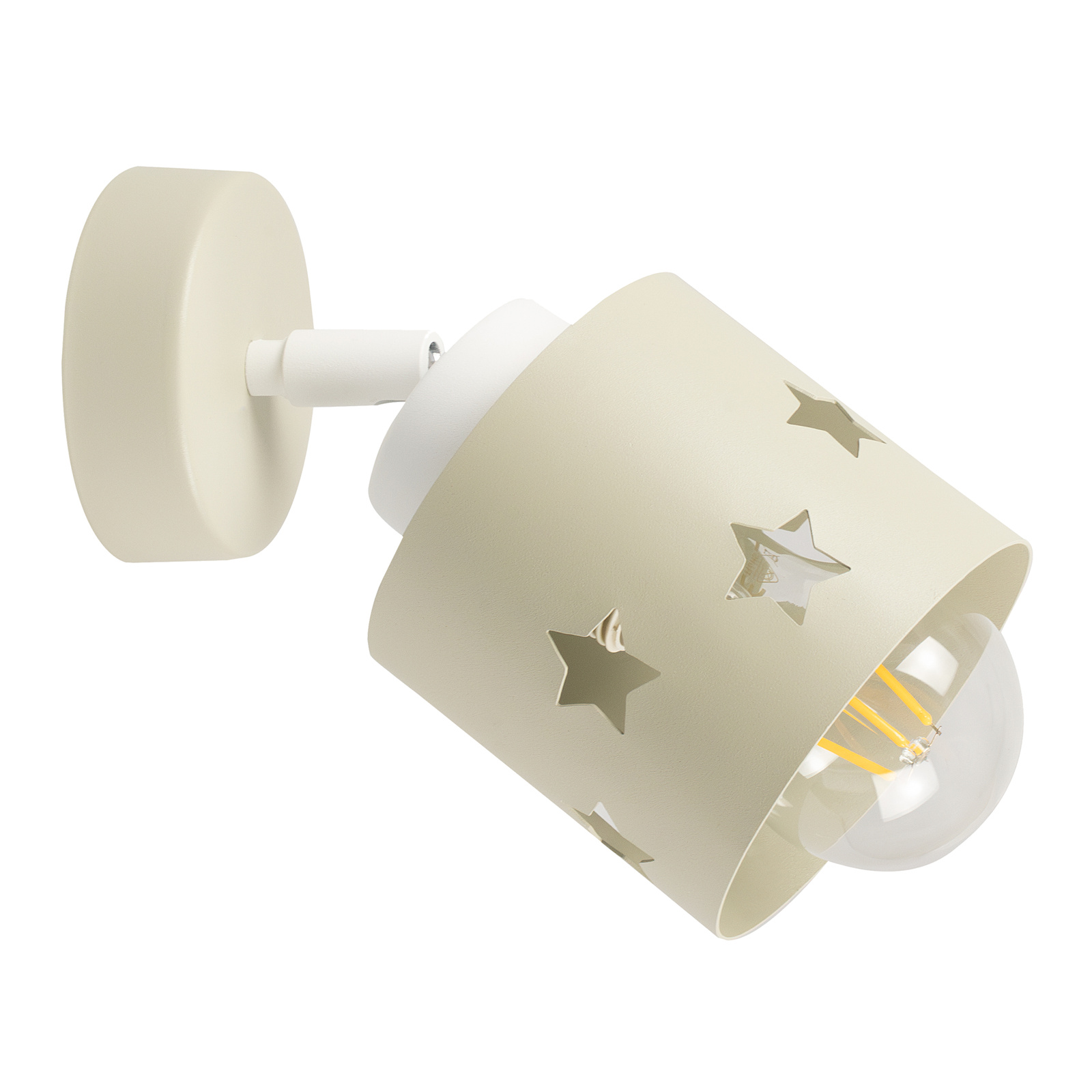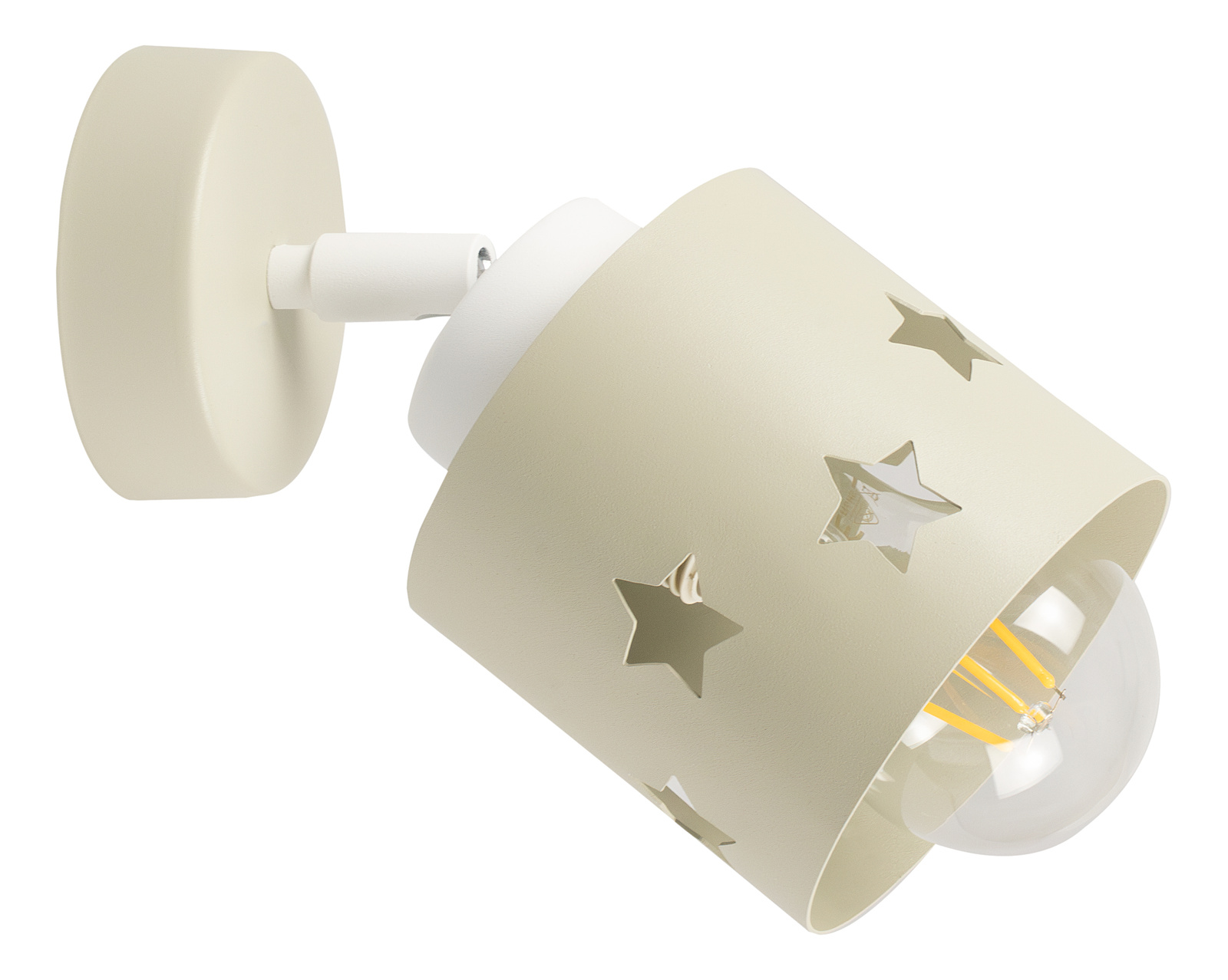 Prawdziwą ozdobą kinkietu jest klosz z wyciętymi GWIAZDKAMI – po zapaleniu światła rzuca on na ścianę subtelne cienie, tworząc magiczny efekt, który zachwyca najmłodszych i wywołuje uśmiech również na twarzach dorosłych .