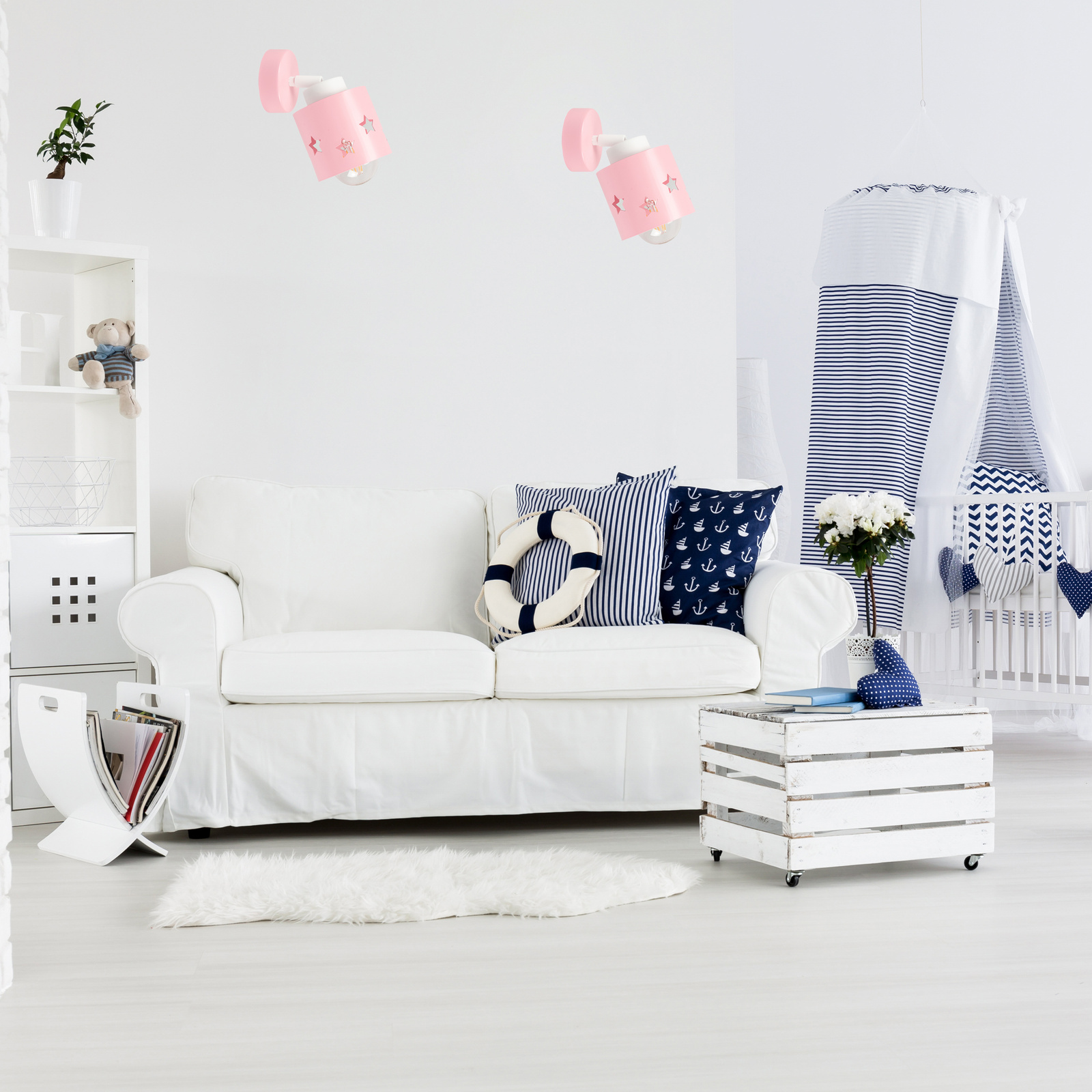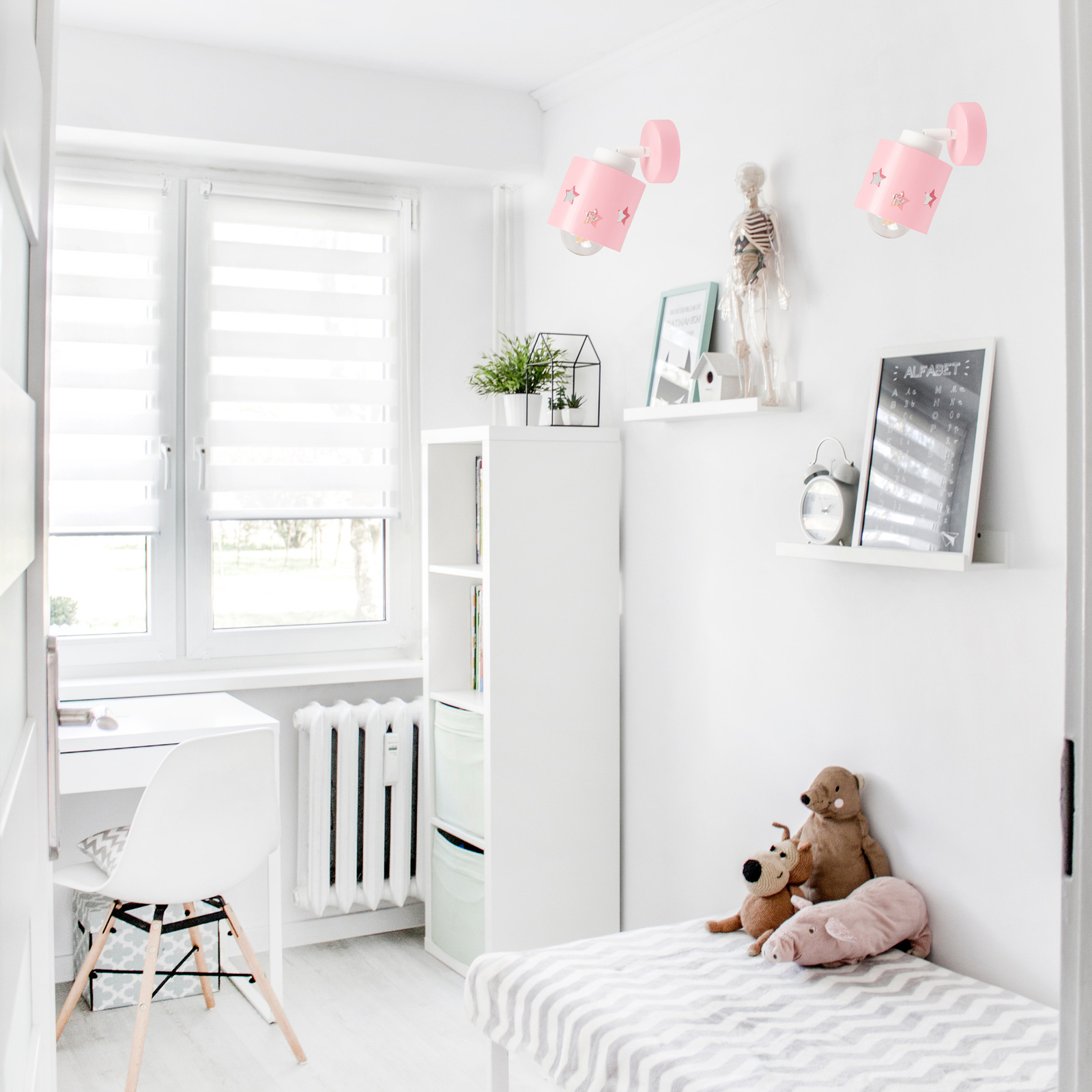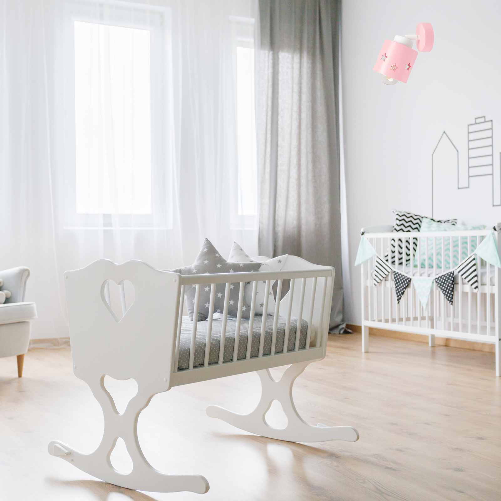 LUNARI to kolekcja oświetlenia stworzona z myślą o najmłodszych, a jej różowy kinkiet to prawdziwa perełka w dziecięcym pokoju. Już na pierwszy rzut oka zachwyca delikatną, pastelową kolorystyką, która tworzy atmosferę spokoju, radości i beztroski.