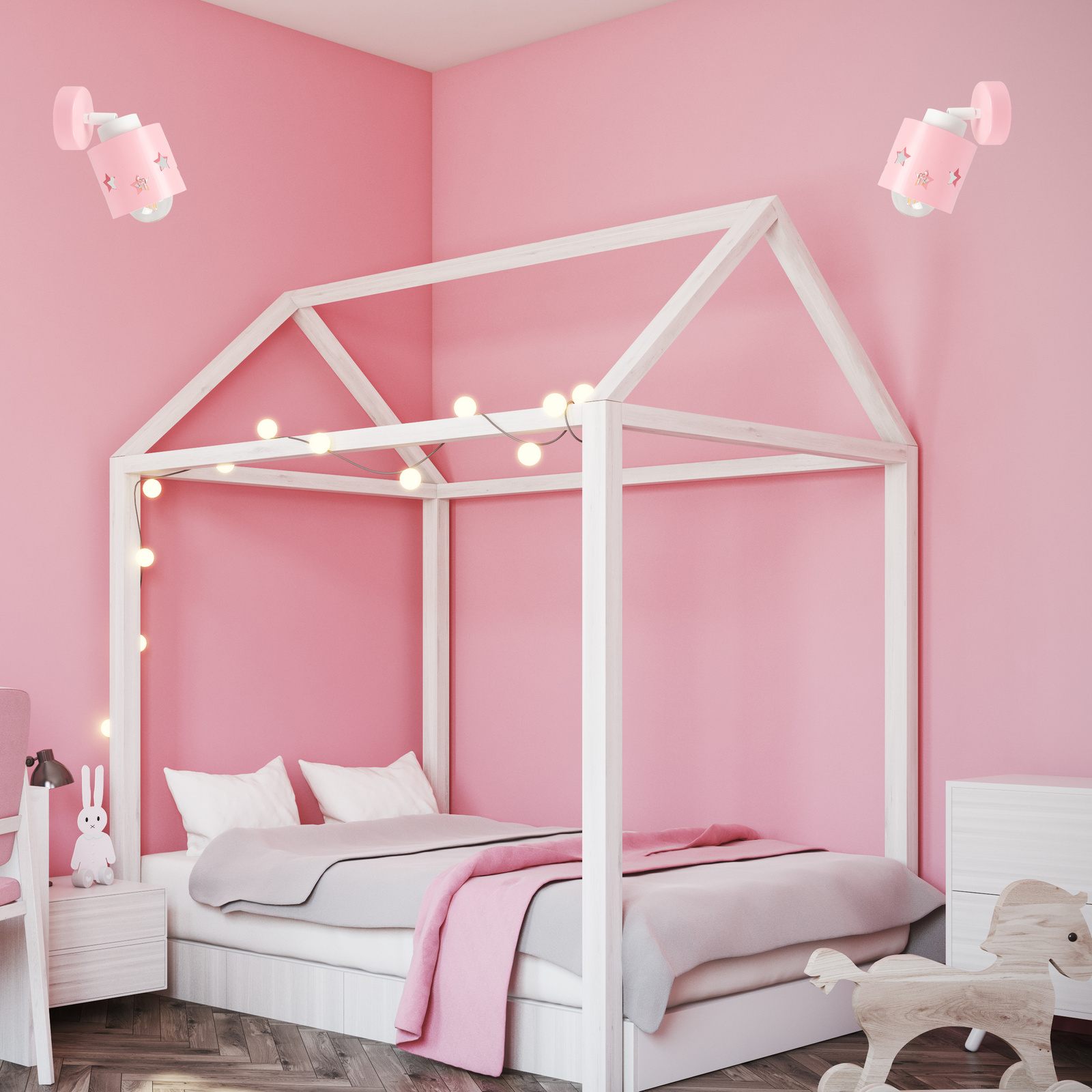 LUMIMI to kolekcja oświetlenia zaprojektowana z myślą o najmłodszych – a jej różowy kinkiet to prawdziwa ozdoba każdego dziecięcego pokoju. Już na pierwszy rzut oka urzeka swoją delikatną, pastelową kolorystyką, która tworzy atmosferę spokoju, radości i dziecięcej beztroski.