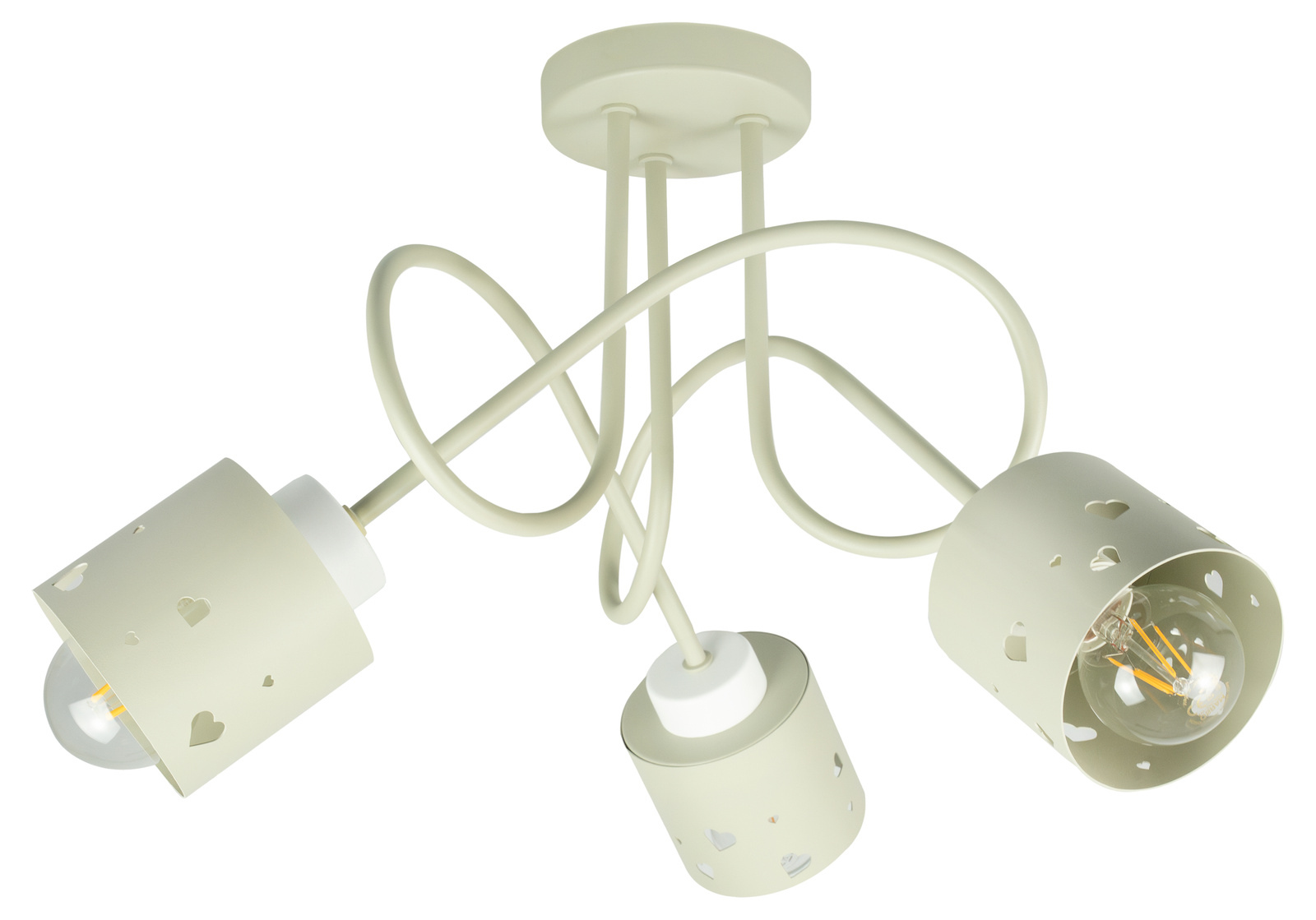 Lampa sufitowa LUMIMI w odcieniu delikatnego beżu to połączenie romantycznego detalu z nowoczesną formą. Jej stała, designerska konstrukcja z trzema źródłami światła oraz klosze ozdobione uroczymi serduszkami sprawiają, że będzie idealnym dopełnieniem przytulnego wnętrza – dziecięcego pokoju, sypialni czy stylowego kącika relaksu