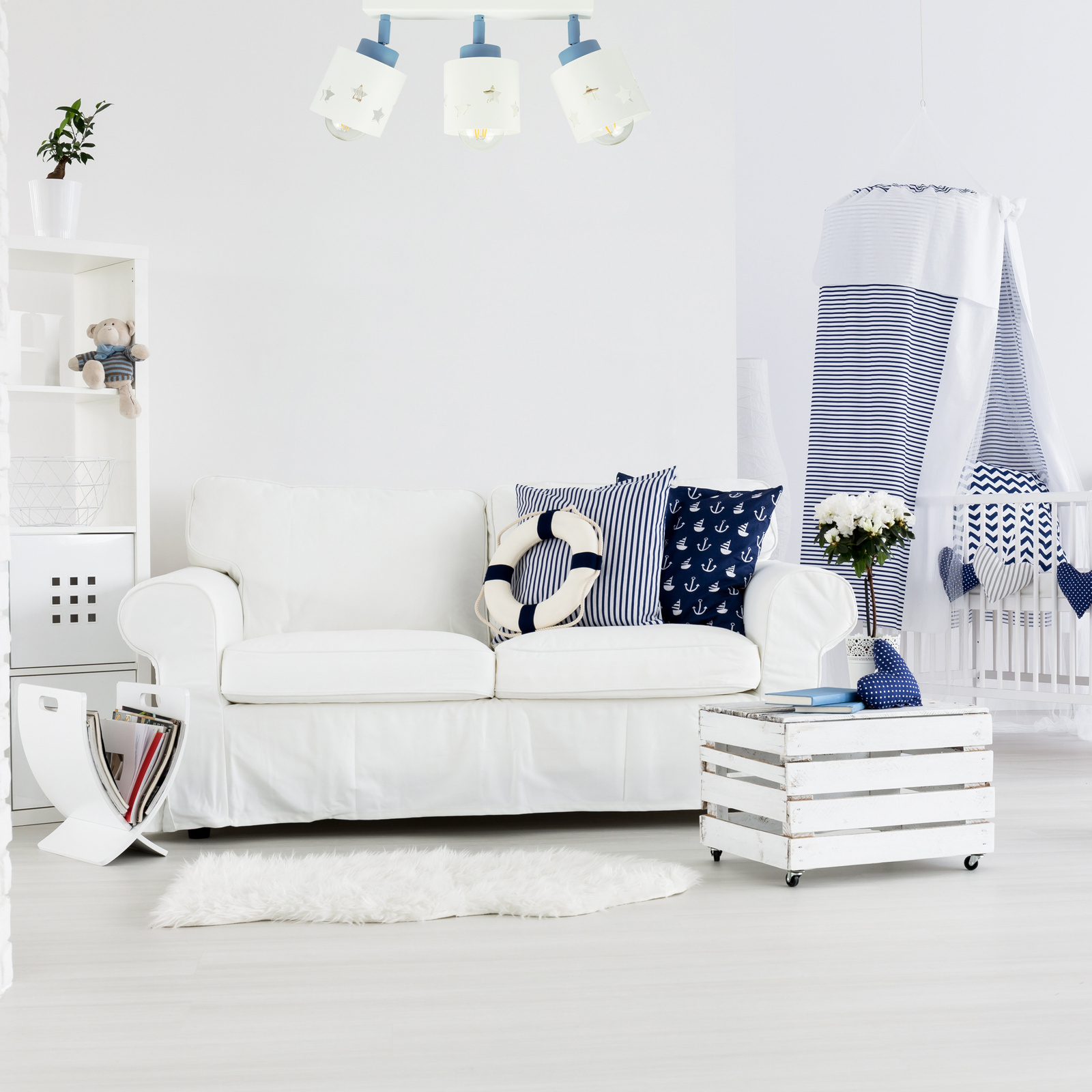 Zobacz, jak delikatna biel i niebieskie akcenty harmonijnie współgrają z pastelowymi meblami, miękkimi tekstyliami i kolorowymi dodatkami. Zdjęcia pomogą Ci wyobrazić sobie, jak ta lampa uzupełni wnętrze Twojego dziecka – od kącika do zabawy po przestrzeń nad łóżkiem czy biurkiem.