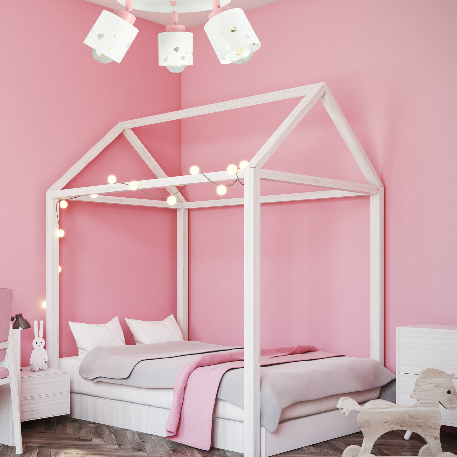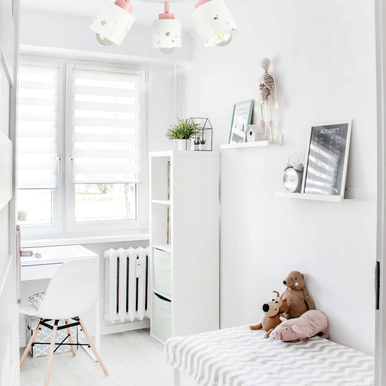 Plafon LUMIMI to nie tylko oświetlenie – to pełen uroku element dekoracyjny, który rozjaśni pokój Twojego dziecka ciepłym blaskiem i pozytywną energią. Jego czysta biel i subtelne różowe akcenty wprowadzają do wnętrza przytulność, spokój i dziecięcą radość .