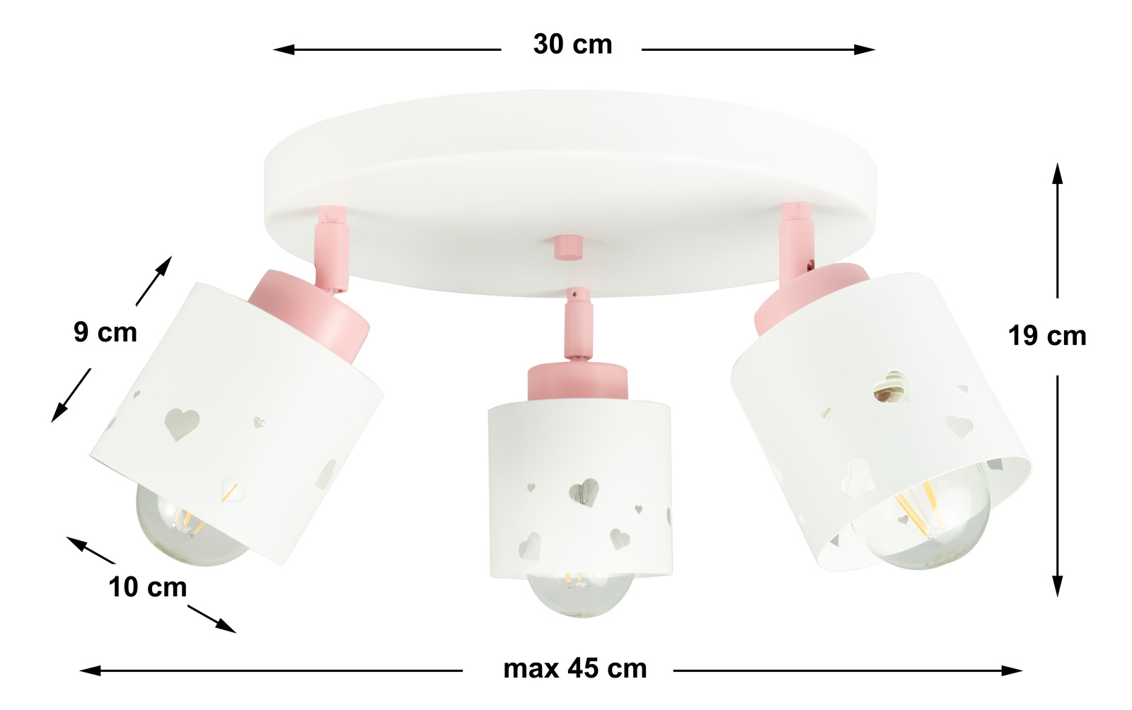 Sercem lampy są klosze ozdobione wyciętymi serduszkami, które nie tylko przyciągają wzrok, ale nadają lampie wyjątkowy, przyjazny charakter. To detal, który buduje atmosferę czułości i domowego ciepła – idealną do codziennej zabawy, nauki i wieczornego relaksu.