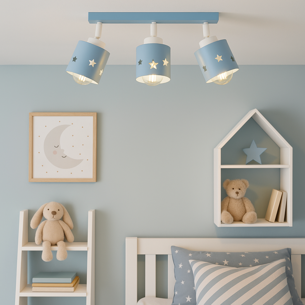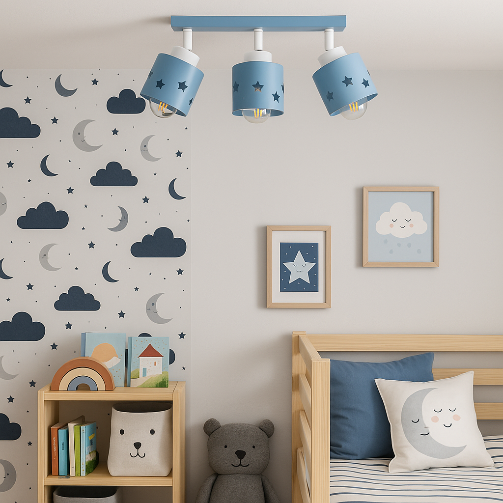 LAMPA SUFITOWA DZIECIĘCA NIEBIESKA WISZĄCA PLAFON GWIAZDKI RUCHOMY LUNARI LN/3