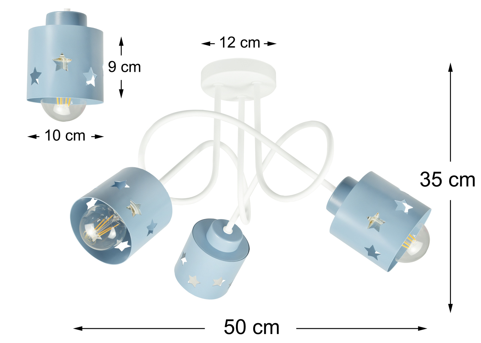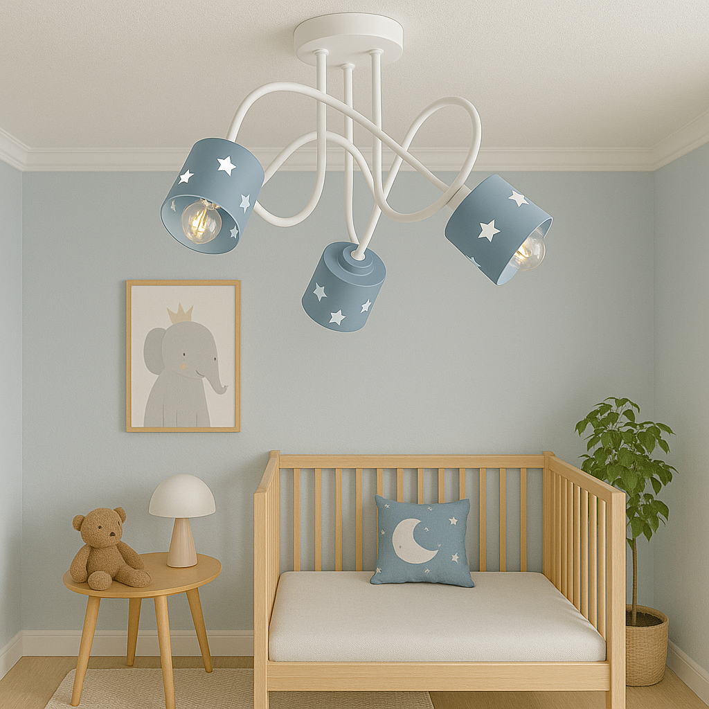 Wprowadź do pokoju niepowtarzalny klimat dzięki lampie LUNARI – uroczej i funkcjonalnej oprawie oświetleniowej, która zachwyca zarówno dzieci, jak i dorosłych. Trzy punkty świetlne zapewniają doskonałe oświetlenie, a klosze z wyciętymi gwiazdkami tworzą magiczną grę światła na ścianach i suficie.