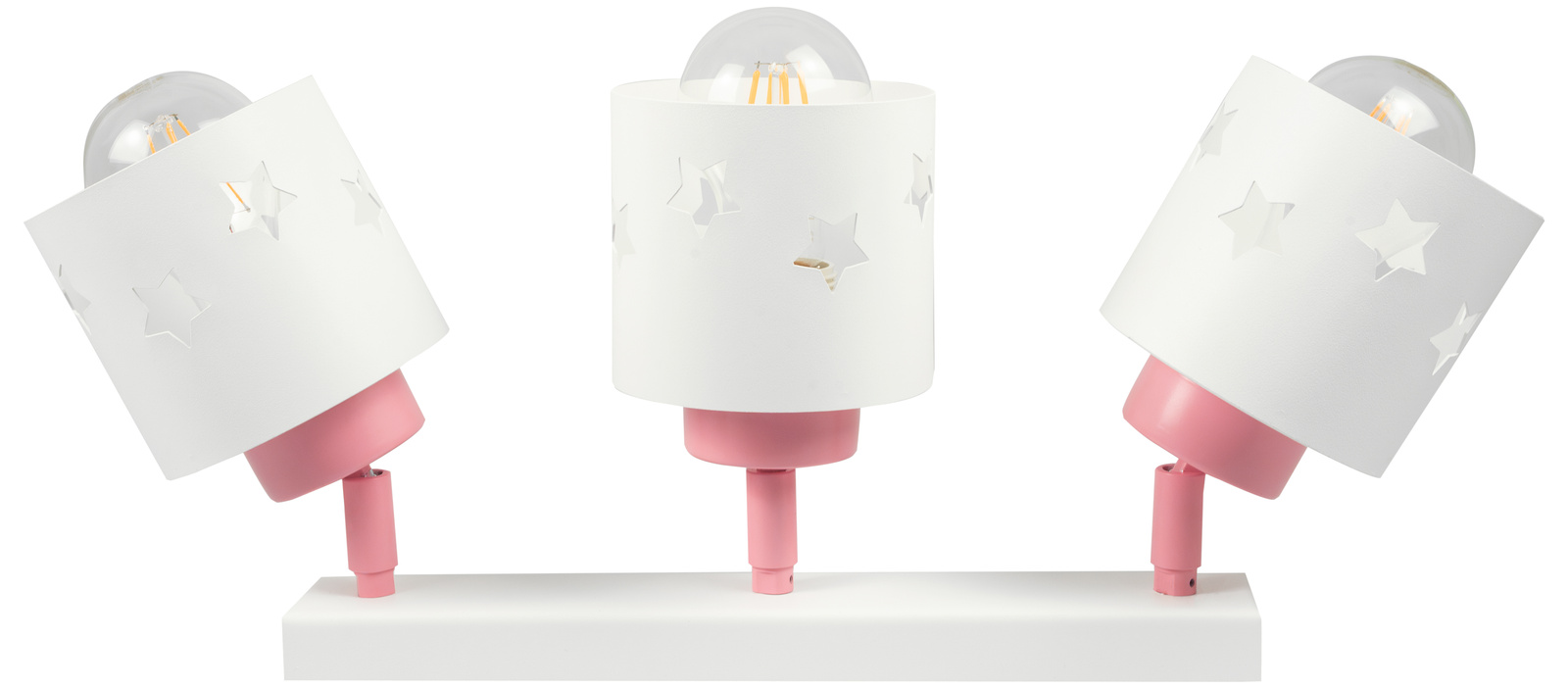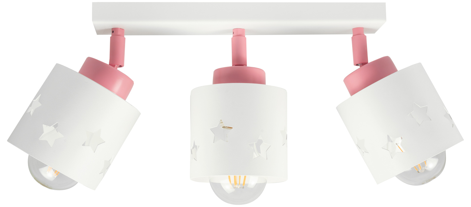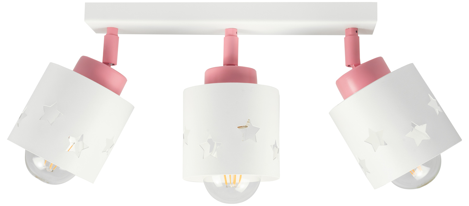 Listwa sufitowa LUNARI z trzema kloszami to idealny sposób, aby wprowadzić do pokoju dziecka nutę przytulności i delikatnej dekoracji. Jej klasyczna biel, przełamana pastelowym różem, wprowadza do wnętrza pogodny nastrój, a starannie wycięte gwiazdki na kloszach nadają lampie wyjątkowego charakteru.