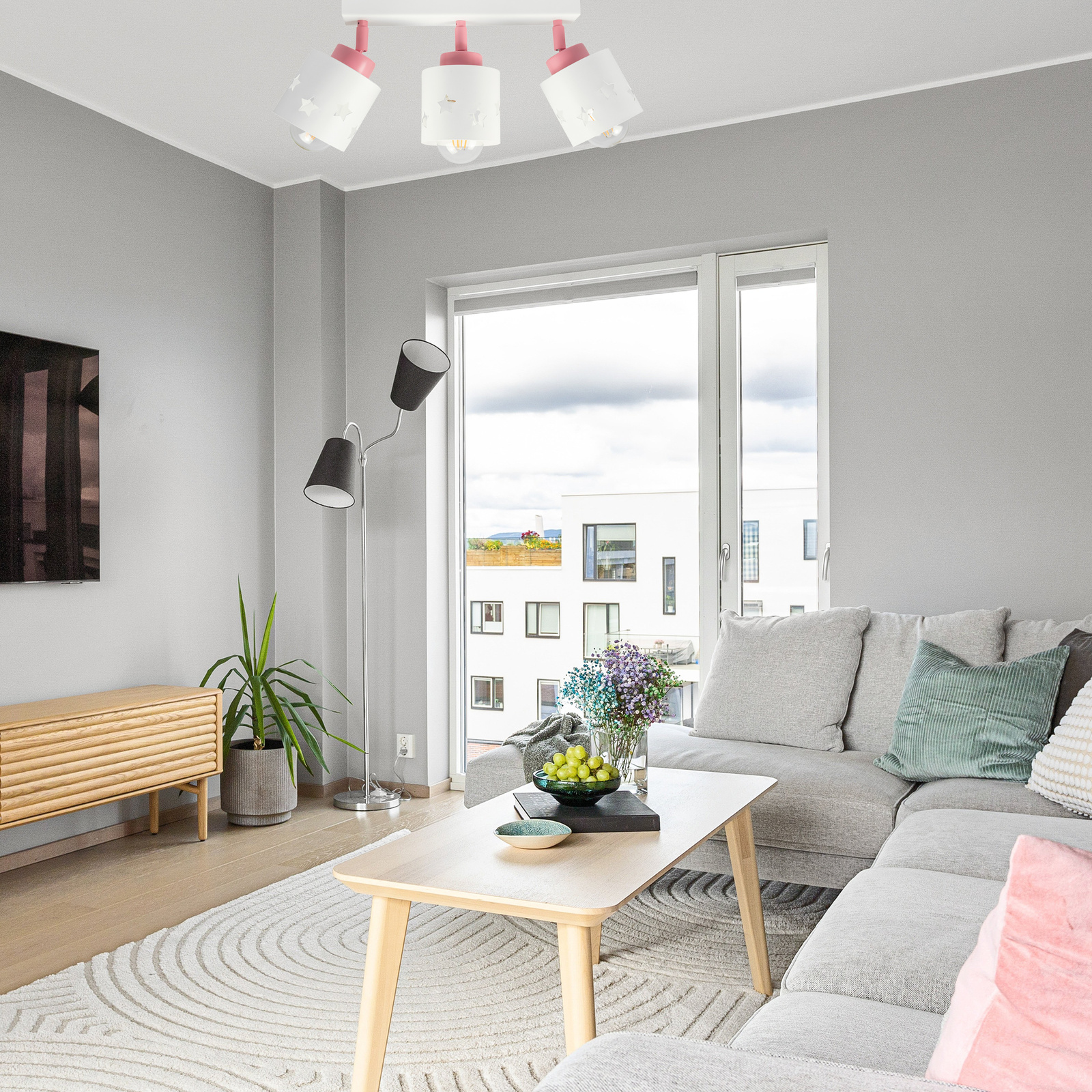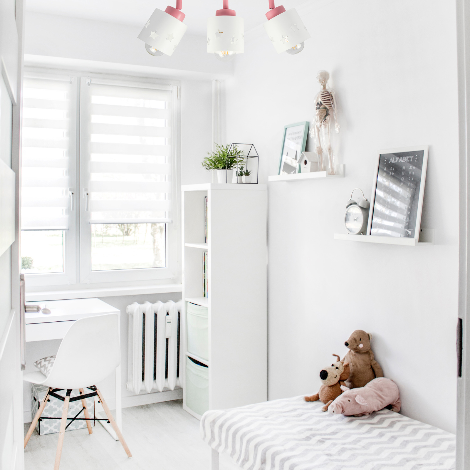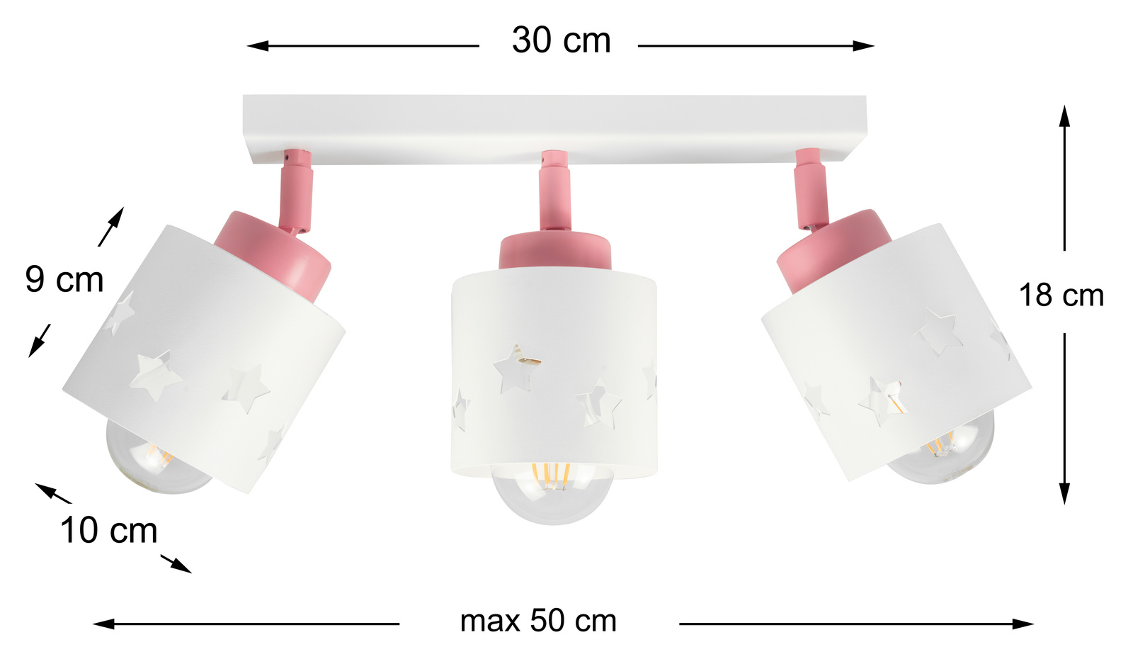 Listwa sufitowa LUNARI z trzema kloszami to idealny sposób, aby wprowadzić do pokoju dziecka nutę przytulności i delikatnej dekoracji. Jej klasyczna biel, przełamana pastelowym różem, wprowadza do wnętrza pogodny nastrój, a starannie wycięte gwiazdki na kloszach nadają lampie wyjątkowego charakteru.